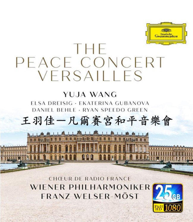 凡尔赛宫和平音乐会 王羽佳 钢琴 Blu-ray The Peace Concert Versailles Yuja Wang (piano) Choeur De Radio France, Wiener Philharmoniker, Franz Welser-Möst Release Date: 15th Nov 2019 Tracklist: 1.Opening 2.Introduction 1 3.Mozart: Die Zauberflöte-Ouvertüre KV 620 4.Introduction 2 5.Debussy: Nocturne Nr. 3 “Sirenes” 6.Introduction 3 7.Holst: Mars, the Bringer of War aus The Planets 8.Introduction 4 9.Wagner: Trauermarsch aus Götterdämmerung 10.Introduction 5 11.Ravel: Klavierkonzert für die linke Hand 12.Introduction 6 13.Vaughan Williams: Dirge For Two Veterans 14.Introduction 7 15.Beethoven: Agnus Dei aus Missa solemnis D-Dur op. 123 16.Introduction 8 17.Ives: The Unanswered Question Applause & Credits